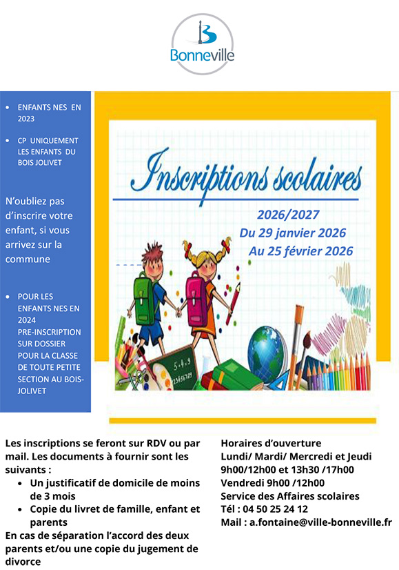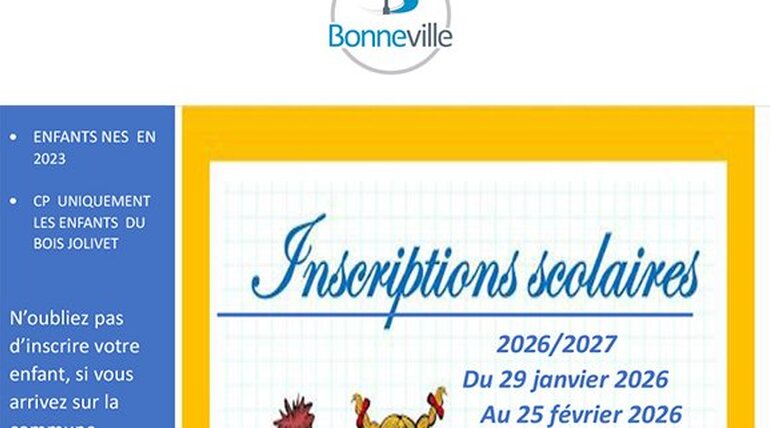 Les inscriptions scolaires pour les enfants nés en 2023 seront ouvertes du 29 janvier au 25 février 2026.